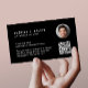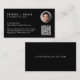 Minimal and elegant black professional business card featuring your photo in a small circle, your name, title and contact information (such as email, telephone numbers, firm name and mailing address) in clean, simple and modern white typography. Input a URL address to create a scannable QR code linked to your website, social media profiles, or any other platform that showcases your work, making it easy for others to explore your expertise. On the back, customize additional text or leave blank.