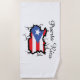 Check out this beautiful Puerto Rico map Beach Towel featuring the puerto rican flag and the lettering "Puerto Rico". You may change the script and customize this product to your needs. Whether you need a gift idea for someone from the caribbean country or you want to represent your boricua pride, this product is amazing and lovely. Make it your own and buy now.