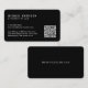 Minimal and elegant professional black business card with your name, title and contact information (e.g., email, telephone numbers, company name and mailing address) in clean, simple and modern white typography. Add your website's URL address to create a scannable QR code. On the back customize additional text or leave blank.
