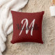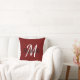 Throw pillow with a dark red background and white custom monogram first initial and first name.