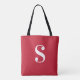 Minimal red tote bag features a large white monogram on each side. Easily add your initial in the sidebar.