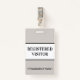 This plain badge design features the message "REGISTERED VISITOR", and a customizable company name or other custom message. A badge like this could perhaps be used to indicate that a person is a known and authorized guest or visitor at a business or workplace. [~Z0000307]