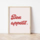 Minimal Retro Script 'Bon Appétit' Kitchen Poster Print. Decorate your kitchen or dining area with this simplistic, retro themed 'bon appétit' wall art print. Please message the designer if you have questions, or if you'd like to make changes.