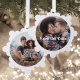 Announce the joyful news of your engagement and upcoming wedding with unique custom photo save the date Christmas ornament cards. The picture, scannable QR code, and all wording on this template are simple to personalize, including script which can be changed to "Save Our Date." Friends and family will love displaying hanging paper ornament invitations as part of their holiday decor. (IMAGE PLACEMENT TIP: An easy way to position a photo exactly how you want is to crop it before uploading to the Zazzle website.) The modern black and white design features two pictures of the engaged couple overlayed with groovy retro minimalist typography. By scanning the QR code with their phones, guests are sent directly to the wedding website where they can see all of the important details and connect with you online. This stylish holiday card makes an elegant announcement for your upcoming special day celebration. Congratulations to the bride and groom!