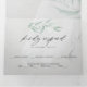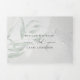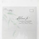 Minimal Sage Eucalyptus Gray Watercolor Tri-Fold Wedding Invitation features Pale sage green eucalyptus leaves paired with a modern abstract watercolor brush stroke background in ultimate gray and white - all in one wedding invitations with pre-addressed detachable meal choice rsvp for your guests to easily mail back