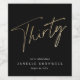 Modern minimalist 30th birthday party invitation features stylish faux gold foil number handwritten script Thirty and your party details in classic serif font on black background color, simple and elegant, great surprise adult milestone birthday invitation for men and women. the black background color can be changed to any color of your choice.