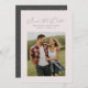 Simple, minimal and elegant, this one-photo vertical save the date is the perfect way to announce your engagement and upcoming wedding to friends and family. The script "save the date" sits above your custom type with plenty of room for names, wedding date, event location and any other info you'd like to share like a website on a soft blush pink background. The back is a matching charcoal gray with a white dash pattern.