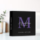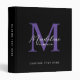 Minimal Script Calligraphy Black Purple Monogram 3 Ring Binder