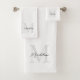 Minimal Script Calligraphy Black White Monogram Bath Towel Set