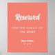 Minimal Script Coral Pink Wedding Reserved Sign