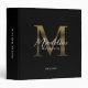 Minimal Script Metallic Black Gold Monogram Recipe 3 ring binder