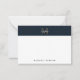 Minimalist Script Metallic Navy Blue Gold Monogram Note Card