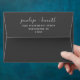 This contemporary wedding invitation envelope features a minimalist aesthetic and simple script typography in black and white.