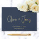 This minimal and elegant dark navy blue wedding guest book features your choice of real gold, silver or rose gold foil, your names in a chic modern script, and your wedding date and location in classic serif typography. You can personalize the title on the spine and add your favorite photo on the back.