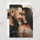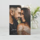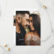 A romantic, simple vertical wedding photo save the date featuring beautiful script calligraphy overlay on the front. The back has a two photo collage with wedding website. Click the edit button to customize this design.
