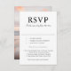 Presenting our minimalist wedding RSVP card, a blend of understated charm and elegant functionality. The card captures attention with its bold, clean serif font, spelling out 'RSVP' with a commanding presence. Below, the due date is artfully written in an elegant script, adding a touch of grace and sophistication. The back of the card offers a delightful surprise – a space for your chosen photo, making each response card a memorable keepsake of your special day. This card not only simplifies the response process for your guests but also carries the essence of your love story, beautifully encapsulated in a modern, minimalist design.