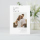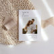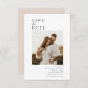This save the date card features elegant script and serif fonts with a matching photo template in the center. This piece is perfect for a chic, minimal, elegant wedding theme. Personalize this save the date card with the couple's photo, names, and wedding date.