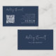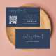 Minimal Script Sicial Media Qr Code Navy Blue Business Card