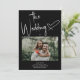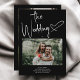 Minimal Script Signature Heart Photo Black Wedding Invitation