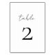 Minimal script table number card. Black script on white background. Part of a wedding collection.