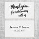 Over an editable white background, I've added a pretty typography graphic that reads "thank you for celebrating with us" in a modern, bold, elegant handwritten script font. Use the template fields to add your details and personalize this design for your own use. If you'd like to change the versatile, serif font I used for the editable text, or otherwise edit the design, click the link to customize the card further. Designed by Melody Watson for Paper Muserie.