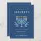 Minimal Simple Blue Menorah Candles Happy Hanukkah Holiday Card