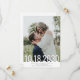 Wedding Save the Date 5x7 Vertical Card with a Simple, Modern Typography Design with large thin font date overlay on top of your photo that you upload to the template and type in your names and wedding location and date for a quick and easy design that will work with whatever theme you choose later. Background colors and fonts are editable to match your color scheme, and you can add more information or additional photos on the back.