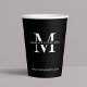 Add a personal touch to your next corporate event or function with these personalized business monogram paper cups. These minimalist black and white paper cups include space for your company name or logo as well as your website. A great marketing tool whilst serving drinks at your business event, grand opening or corporate function.