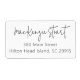 Minimal Simple Elegant Script Address Shipping Label. A simple minimal typography return address label in black type on a white background is a simple and elegant way to add a touch of sophistication to your mail. The clean lines and bold text of the design will make your address stand out, while the black and white color scheme will complement any envelope or package.