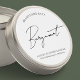 Create professional round labels for your products with this Modern Simple Candle Circle Label design. Featuring fully editable design in black and white, minimal layout and stylish script font. The perfect packaging design for product jars, tins or boxes.