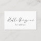 Modern black and white typographic business card featuring a simple and minimal design with "Hello Gorgeous" in an elegant script typography along with your personalized message. The back has your contact info and optional QR Code. You may remove the QR Code and change the colors of the fonts and background in the design editing tool.