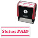 This rubber stamp design features the message "Status: PAID". It could perhaps be used to indicate that a bill or invoice has been fully paid.
