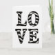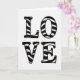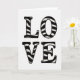 This greeting card features the word “LOVE” in large capital letters, stacked vertically with “LO” above “VE” in the center. The letters are black and off-white, with thick black outlines that look slightly uneven, giving the shapes a strong presence. Inside each letter, curved black and pale stripes sweep across like an old-fashioned candy stripe pattern. A few tiny speckles and faint smudges sit over the letters and the background, making it feel a bit worn-in and familiar. The background is plain white, so the design feels focused and easy to take in at a glance. The only text on the front is “LOVE,” and it’s set in big, simple capitals that read clearly from across the room. It feels meaningful to give because it says exactly what you mean without needing a lot of extra words ❤️. Hope it helps you share your Valentine’s Day sentiments 🥰.