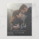 Announce your big day in style with this modern minimalist save the date card—perfect for couples who love elegant simplicity. Featuring your favorite engagement photo as the focal point, the design is enhanced by a subtle transparent sunray overlay, adding a romantic and ethereal touch. The reverse side showcases a soft watercolor gray background, providing a serene and timeless aesthetic. Created by Simply Farmhouse Press.