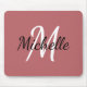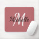 Mouse pad with a rose red background and white custom monogram first initial and first name