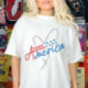 This t-shirt is perfect for celebrating patriotic holidays like the 4th of July. The design features the word "America" surrounded by a heart with thin lines and the American Flag incorporated into the text. It is a stylish and comfortable way to show your love for the United States. Made with high-quality materials, this t-shirt is perfect for any casual occasion. Wear it to a BBQ, parade, or any other patriotic event. It is available in a range of sizes to fit all body types. Get ready to show your patriotism with this stylish and comfortable t-shirt.