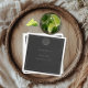 Sleek, sophisticated, and effortlessly elegant — this modern wedding cocktail napkin is perfect for the couple who loves timeless design with a contemporary twist. Featuring crisp white text on a clean charcoal black background, the layout is framed by a thin openwork border that adds just the right touch of detail. The couple's first names take center stage, drawing the eye before guiding guests to the event details in a minimalist modern font. A simple line art seashell adds a touch of coastal charm. Created by Simply Farmhouse Press.