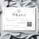 Sleek, sophisticated, and effortlessly elegant — this modern wedding response card with a QR code is perfect for the couple who loves timeless design with a contemporary twist. Featuring crisp charcoal black text on a clean white background, the layout is framed by a thin openwork border that adds just the right touch of detail. The event details are showcased in a minimalist modern font. A single seashell adds a coastal touch. Created by Simply Farmhouse Press.