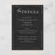 Sleek, sophisticated, and effortlessly elegant — this modern wedding details enclosure card is perfect for the couple who loves timeless design with a contemporary twist. Featuring crisp white text on a clean charcoal black background, the layout is framed by a thin openwork border that adds just the right touch of detail. The event details appear in a minimalist modern font. Elegant and understated, this design will impress. Created by Simply Farmhouse Press.