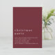 Having your Minimal Typography Christmas Party Burgundy Invitation match the theme of your party is a great detail that your guests will appreciate. The thoughtfulness of a consistent party theme is often appreciated and can show your guests that you can host a cohesive event.
