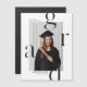 A modern graduation announcement magnet card features minimal typography design with customizable background.