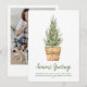 Minimal Watercolor Christmas Tree Photo Holiday Card