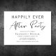 Minimal and chic black and white wedding after party invitation for a post elopement or wedding celebration. "Happily Ever After Party" is written in a mix of simple typography and an elegant modern script.