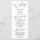 Minimal wedding program featuring modern script font. All the wedding ceremony information and the wedding party's name listed on this program.