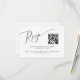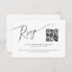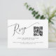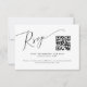 Elegant and minimal wedding RSVP card featuring a modern script text at the top with a QR code. This simple design will work for any season. The card also includes meal choice options for guests to select from.