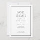 Islamic Muslim Minimal Save The Date Announcement Card. White color background with a minimal black script typography. There is simple black colour border frame. Classic. Clean. Use the Design Tool on Zazzle to make it unique for you. Wedding stationery. This card can be used to announce your wedding, engagement or any other Islamic ceremony. Contact designer for any changes to the product.
