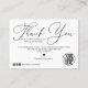 This simple and elegant business customer thank you card is perfect for the modern and trendy business. It features handwritten script typography with the words, "Thank You." Accompanying this text is a modern and minimalist sanserif font on top of a white background. The card includes a thank you message, a discount message, your social media information, your logo, and your business information; all of which can be customized to your liking. This sleek, unique, minimalist, and modern design will surely impress your customers and encourage return business.