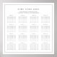 Minimalist gray white wedding find your seating plan. A modern very simple graphic dark gray and white outline wedding square event seating chart or seating plan, for 16 tables. Perfect for a simple minimalistic or modern wedding or formal seated event. Edit with your own names and wedding or event details. Other matching items are available. Designed by www.mylittleedenweddings.com