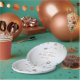 Modern and simple Bridal Shower paper plate featuring white pearls border on a grey gradient background and vibrant calligraphy text.