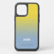 Bright yellow to light blue gradient features your monogram in a minimal white sans serif font near the bottom. Add your initials, name, or other text in the sidebar. Other case styles and models are also available in the sidebar.